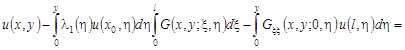 Подберем теперь постоянную так, чтобы определенная формулой (30) функция была решением интегрального уравнения (29). С этой целью внесем выражение (30) для в левую часть (29). После простых вычислений получаем: