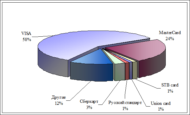 В условиях развития мирохозяйственных связей происходит процесс интеграции экономик отдельных государств и развития платежных систем, в частности, в направлении развития безналичных форм расчетов, которые, в свою очередь, нашли широкое применение в современном мире. Одним из инструментов безналичных расчетов является пластиковая карта. В большинстве экономически развитых стран пластиковая карта является неотъемлемым атрибутом сферы торговли и услуг. Проведение операций с помощью платежных карт показывает степень интегрированности банковской системы и общества. Достаточно сказать, что безналичная оплата товаров и услуг в промышленно развитых странах достигает 90% в структуре всех денежных операций.