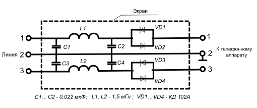 — фильтры защиты линейные (высокочастотные) для установки в линиях аппаратов телеграфной (телекодовой) связи;