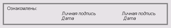 Если необходимо, лица, присутствовавшие при работе комиссии, должны своими личными подписями удостоверить факт ознакомления с содержанием акта по форме: