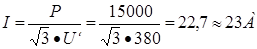 Рассчитиваем допустимый ток работы котла в номинальном режиме при полной мощности