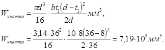 Момент сопротивления изгибу сечения нетто при d=36мм, b=10, t1