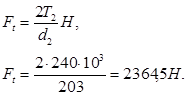 Ведомый вал несет такие же нагрузки, как и ведущий: Ft
