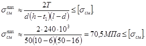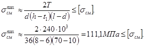 Напряжения смятия и усилия прочности /1,формула 8.22/