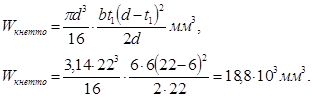 Момент сопротивления сечения нетто при d=22мм, b=6, t1