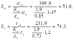 Уточненный расчет состоит в определении коэффициентов запаса прочности s для опасных сечений и сравнении их с требуемыми значениями [S]. Прочность соблюдена при S ≥ [S], где [S]=2,5