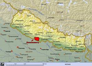 Рисунок 1. Расположение Капилавасту (на современной территории Непала)