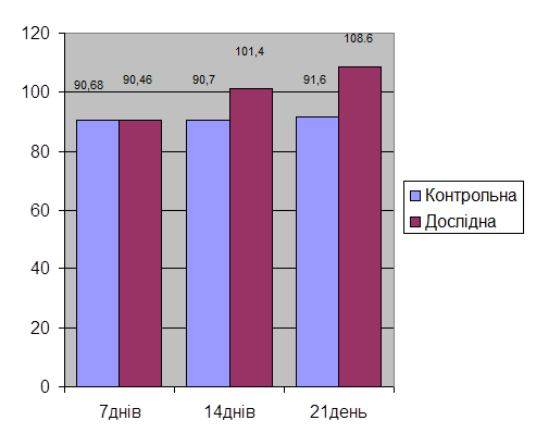2. Внутрішньом’язеве введення ферровету дворазово з інтервалом 7 діб у дозі 2,5 мл. підвищує вміст гімоглобіну до 108,6 г/л, а кількість еритроцитів 6,68 Т/л на відміну від суйферовіту.
