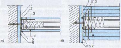 1 - подвійна гіпсокартонна обшивка; 2 - металевий каркас; 3 - звукоізоляційний матеріал