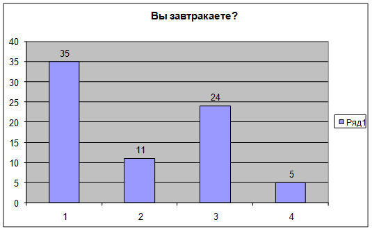 Мы убедились в том, что раньше люди очень внимательно относились к завтракам. А что же современники? Ответить на этот вопрос нам помогло небольшое исследование: были протестированы люди разного возраста и социального положения. Результаты следующие: