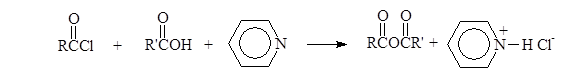 Ангидриды карбоновых кислот, как мы только что видели (3.1), могут быть получены из хлорангидридов и солей карбоновых кислот. Кроме того они могут быть получены из ацилхлоридов и карбоновых кислот в присутствии пиридина: