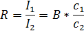 Относительная интенсивность (R) двух гомологических линий различных элементов не зависит от температуры, а определяется только их концентрацией c1