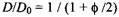 Молекулы растворителя в непрерывной среде, содержащей сферические капли, замедляются лишь умеренно, и коэффициент диффузии относительно свободной от капель системы описывается выражением
