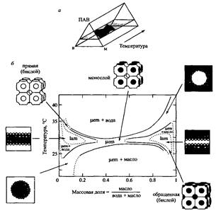 На рис. показаны микроструктуры для неионогенных ПАВ. Картина будет аналогичной и для ПАВ других типов, если температуру заменить на концентрацию соли для ионогенных ПАВ.