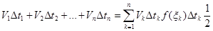 Будемо вважати, що шлях S, пройдений точкою, наближено дорівнює цій сумі. Коли Δtk→0, тоді змінна швидкість на проміжку Δtk мало відрізняється від постійної Vk. Тому дійсне значення шляху, пройденого точкою за час T - t0 буде дорівнювати границі цієї суми при max Δtk→ 0, тобто