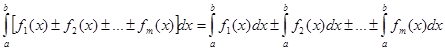 Визначений інтеграл від алгебраїчної суми скінченної кількості функцій дорівнює такій самій алгебраїчній сумі інтегралів від кожного доданку, тобто