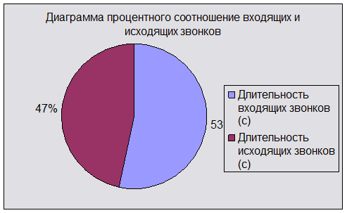 Построить круговую диаграмму, отражающую процентное соотношение входящих и исходящих звонков.
