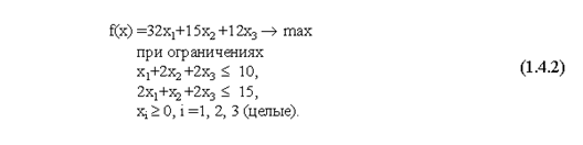 Модель (1.4.2.) является примером оптимизационной модели детерминированного типа (с вполне определенными элементами).