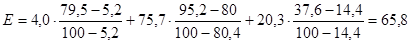 Общий эффект сепарирования Е определяется как средневзвешенная степень обогащения обеих фракций :