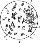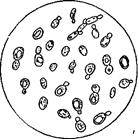 1. Посторонние дрожжевые грибки являются наиболее опасными микроорганизмами, так как примесь их снижает подъемную силу готовой продукции. Candida Guillermondii. Форма клеток довольно изменчива — удлиненная или овальная, иногда вытянутая; почкование прямое или под углом; в дрожжерастильных аппаратах при сильной аэрации образуются довольно крупные сростки (веточки) почкующихся клеток. При высеве на сусло-агар Candida guillermondii образует колонии диаметром от 1 до 2 мм, желтовато сероватые, слегка выпуклые, гладкие. В жидком солодовом сусле образует кольцо и осадок. Эти дрожжевые грибки сахара сбраживают слабо. Очень воздухолюбивы в условиях сильной аэрации в дрожжерастильных аппаратах быстро размножаются, часто опережая рост основной культуры сахаромицетов. Оптимальная активная кислотность (рН) Candida guillermondii 3,5—6,0. Оптимальная температура роста 28—33 °С.