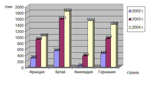 Большинство российских предприятий, производящих искусственные подсластители для пищевой промышленности, используют импортное сырье – в последние годы наблюдается устойчивая тенденция роста импортных поставок искусственных заменителей сахара в нашу страну. Это связано с возрастающими потребностями различных отраслей промышленности, особенно тех, которые перешли на западные технологии производства. Так, в 2001 году объемы импортных поставок искусственных заменителей сахара в Россию составили 3 224 тонны, а в 2002-м они выросли на 46% (рис. 2). В 2003 году рост продолжился, хотя его темпы несколько замедлились – до 38%. В 2004 году импорт заменителей сахара вырос еще на 22% и составил 7925 тонны. Можно заключить, что импорт искусственных заменителей сахара будет увеличиваться и в текущем году.