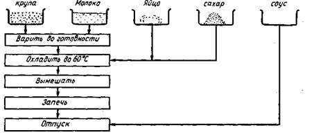 Рецептура: крупа гречневая—74 г, вода—70 г, молоко—50 г, творог—85 г, сахар —10 г, яйца —10 г, сухари —5 г, маргарин —5 г, сметана—35 г. Выход—280 г.