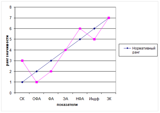 Отсюда видно, что всякое отклонение фактического ранга от нормативного того или иного показателя дает явное представление об опережении или отставании фактического темпа роста одноименного показателя от его нормативного значения.