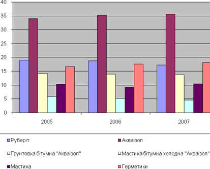 Як бачимо з таблиці, прибутки підприємства заводу «Акваізол» постійно зростають. За три роки вони збільшились на 5,6 млн. грн. Хоча витрати зростають, але за рахунок відповідного зростання доходів рентабельність підприємства підвищується: у 2006 році вона складала 1,25, а у 2008 – вже 1,28.