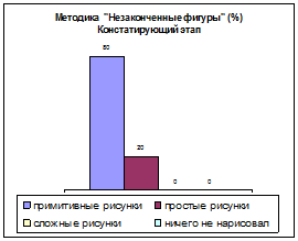 По диаграммам трех методик видно, что у большинства учащихся развитие воображения находится на очень низком и низком уровнях и лишь небольшая часть учащихся обладает средним уровнем развития воображения, а высокий и очень высокий уровни вообще отсутствуют.