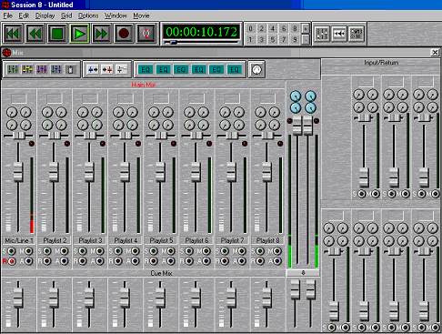 Для микширования Session 8 располагает двумя режимами: внешний, для использования с автономным микшером, и внутренний, полностью цифровой. Во внутреннем режиме работа идет с «виртуальным» микшером на экране монитора. Цифровые параметрические эквалайзеры позволяют работать без каких-либо качественных потерь, присущих аналоговым агрегатам.