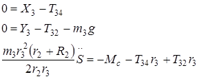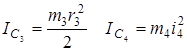 Блок 3 – сплошной однородный цилиндр, для катка 4 известен радиус инерции, поэтому моменты инерции этих тел относительно осей, проходящих через их центры масс и перпендикулярных плоскости чертежа, будут вычисляться: