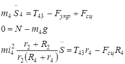1) каток 4 движется без проскальзывания, т.е. модуль силы сцепления подчинен следующему ограничению: