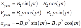 Ограничимся состоянием установившегося движения. В этом случае закон движения груза, его скорость и ускорение имеют вид