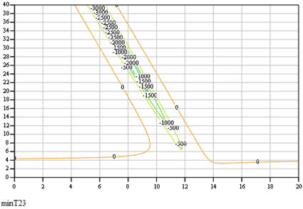 Исследуем теперь зависимости (27). Для этого изобразим их на плоскости линиями уровня. Отдельно для каждой функции линии уровня будут иметь вид:
