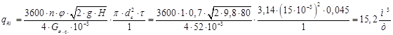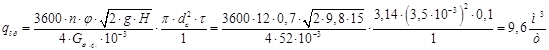 З раніше проведеного розрахунку: витрата живильної води через насос , питомий об’єм води в живильному трубопроводі , швидкість руху рідини в живильному трубопроводі