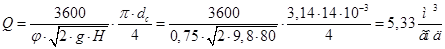 Тиск води: . Діаметр сопла: . Коефіцієнт витрати: . Загальна кількість сопел: . Витрата води на одне сопло: