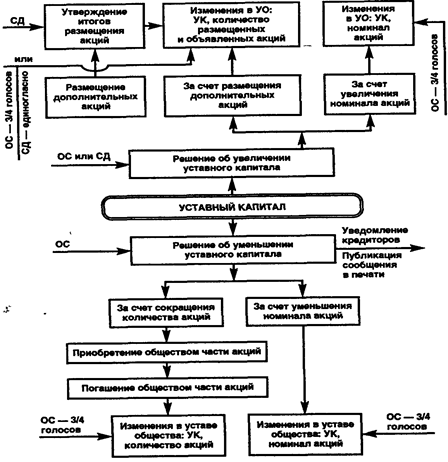 Схема 1. Алгоритм внесения изменений в уставный капитал (УК) и устав общества