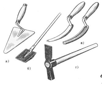 Розшивки (рис. 1 в) служать для обробки швів. За допомогою розшивок швах надають певну форму. Профіль поперечного перерізу і розміри розшивок повинні відповідати заданій формою і товщині швів. Існують розшивки для опуклих швів і для увігнутих швів. Молоток-кирка (рис. 1 г) застосовується для рубки цілої цегли або каменю, наприклад черепашнику на половинки, четвертинки і т. п. , а також для тесанням цегли або каменю.