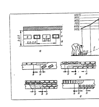 Періодично перевіряють товщину швів. При цьому товщина окремих вертикальних швів повинна бути не менш 8 і не більш 15мм, горизонтальних не менш 10 і не більш 15мм. Стовщення швів проти передбачених правилами можна допускати лише у випадках, застережених проектом; при цьому розміри стовщених швів повинні вказуватися в робочих кресленнях Правильність повноти заповнення швів (вертикальних і горизонтальних) розчином перевіряють, виймаючи в різних місцях окремі цегли виложенного ряду .