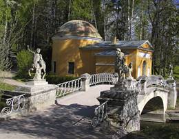 Павловский дворцово-парковый ансамбль расположен в 27 км на юг от Санкт-Петербурга. В XIII веке здесь находилась небольшая новгородская крепость, в годы шведского владычества - укрепление, от которого сохранились остатки земляных валов. В 1777 году Екатерина подарила эти земли великому князю Павлу Петровичу для устройства летней резиденции наследника престола. Создание Павловского парка и его скульптурного убранства началось в 1780 году. Главной творческой фигурой в формировании Павловского ансамбля более двадцати лет являлся Чарльз Камерон. По его проекту в 1782 - 1786 гг. возвели дворец, в период с 1782 до 1807 года построили павильоны, Колоннаду Аполлона, Большой каскад, установили колонну "Конец света". По чертежам Ч. Камерона парк украсили мостами - Кентавров, Горбатым, Черным.
