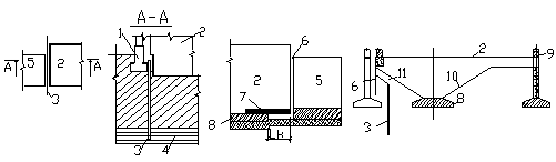 До складу геодезичних робіт входить також організація спостережень за тріщинами. Ці спостереження мають дві мети: виявити поширення зон деформацій (маяками, мал.2.1) і встановити характер розвитку ушкоджень у часі, (наприклад, за допомогою найпростішого мікроскопа).