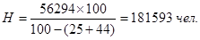 Удельный вес обслуживающей группы составляет, как правило 18-25% (принимаем 25%), а удельный вес несамодеятельного населения с учетом расширения территорий города составляет 40-46% (принимаем 44%). Таким образом, общая численность населения составляет: