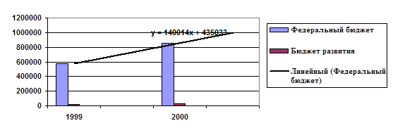 Для определения тесноты взаимосвязи расходов Федерального бюджета и Бюджета развития РФ был рассчитан коэффициент корреляции, который оказался равным 1. Это показывает очень тесную связь между данными показателями.