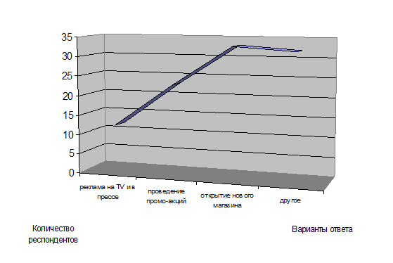 Стоит обратить внимание на новые виды товара, к таковым в настоящее время относятся почти все вида замороженных овощей, можно попробовать хлебобулочные изделия, так как при самообслуживании в магазине покупатель обращает внимание на внешнее представление о виде продукции, далее – это мясные и рыбные полуфабрикаты, и фасованная бакалея, что следует из анализа и выводов предложенных анкет.