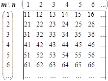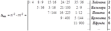 Упорядоченная сводка характеристик системы, которые зависят от пар уровней, всегда представляет собой двумерную матрицу. Её структура проста и совпадает с принципом нумерации её элементов :