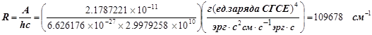 Используя приведённую массу, находим A=2.1787221 эрг×см.