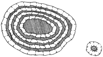 Липосомы могут быть однослойными (диаметр 250...300 ангстрем) и многослойными (5...50 микрометров). Заштрихованные тоны – место нахождения воды, светлые – бимолекулярный липидный слой, «хвосты» составляющих его молекул обращены внутрь слоя.