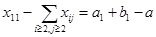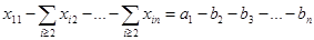 где символ означает сумму всех свободных неизвестных. Аналогично, исключив из первого вертикального уравнения базисные неизвестные с помощью горизонтальных уравнений, мы получаем уравнение