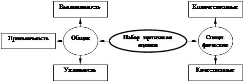 Как правило, всегда имеется несколько признаков решения. Существует сравнительно немного реальных решений, которые могут быть оценены при помощи единственного признака. Не существует "универсального" списка признаков оценки. Можно говорить о системе признаков, включающих две подсистемы общих и специфических признаков (рис. 3).
