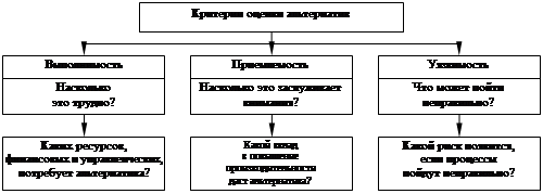 Приемлемость альтернативы – та мера, в которой ее выбор и реализация обеспечивают достижение целей организации. В значительной степени критерии приемлемости зависят от целей конкретного решения. Однако могут быть полезны два обобщения: